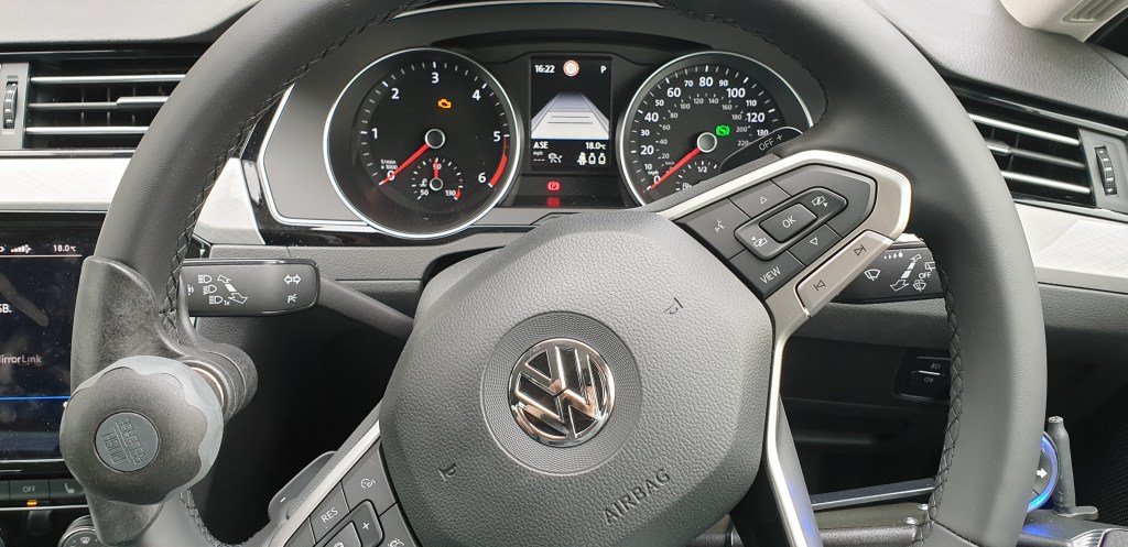 Starting right at the beginning, it’s a 1.6 Diesel with 120bhp, meaning it’s fast enough and plenty of grunt to get moving, but by no means will I be racing it. Much. The car choice stemmed from lack of choice really; I obviously wanted the ford focus estate which ended up being a no go due to production and availability issues, which was disappointing but hey ho. Having looked around, there were only a few options that met my needs: family size, estate style, and under 25 friendly on the motability scheme (basically low insurance group and 120bhp). When we looked there were very few cars that met this criteria other than the ford, and so we had a look at them all. Unfortunately they all came with a caveat; too small, plug in hybrid, really awkward transferring in and out of… when Sarah suggested looking at the VW, I was skeptical but clinging to hope. Unbelievably it was perfect. I didn’t even try getting into it, as when I rolled up it just felt right. The model we were looking at was the top spec, however the sales rep went through everything that was different, and it made no difference. That was the car for us!